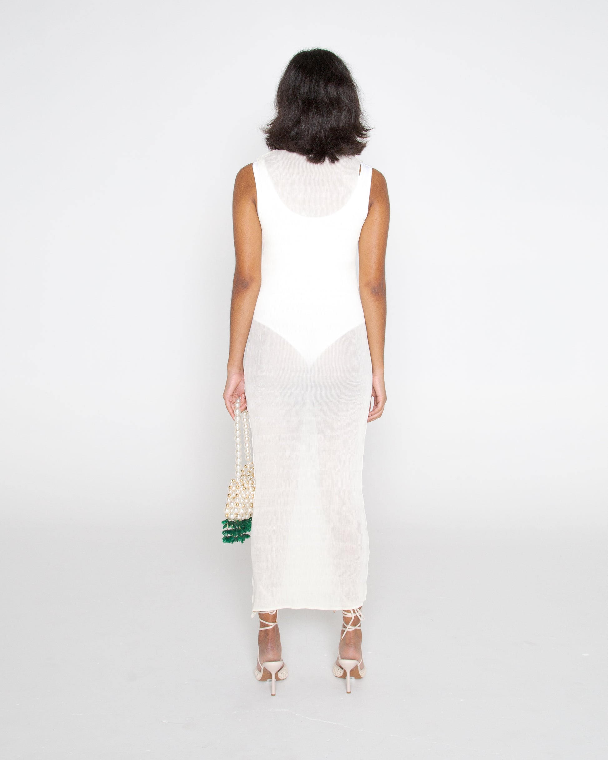 Vintage Y2K Cream perma pleated sheer midi dress