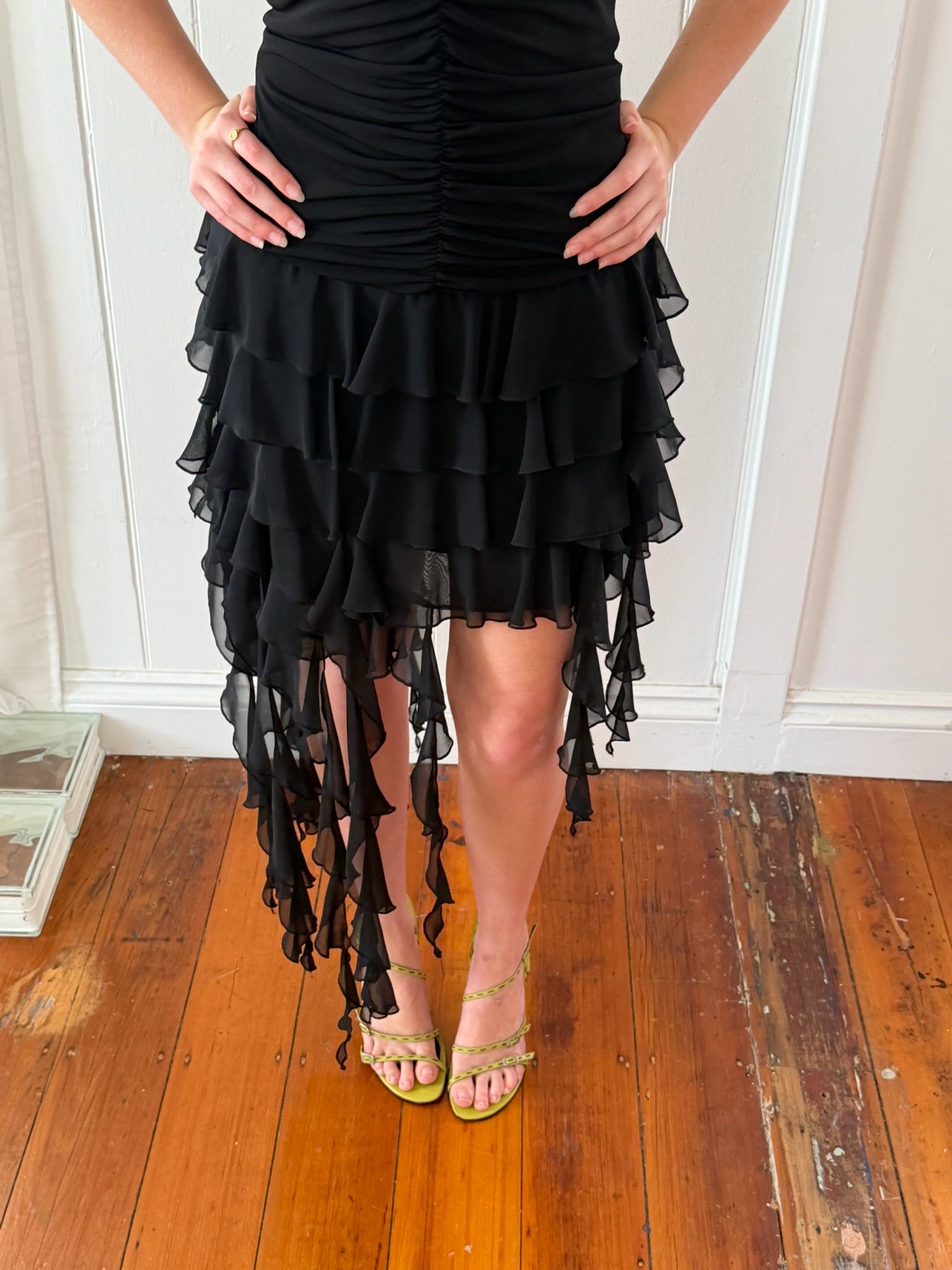Vintage 90s black asymmetrical halter neck jellyfish dress